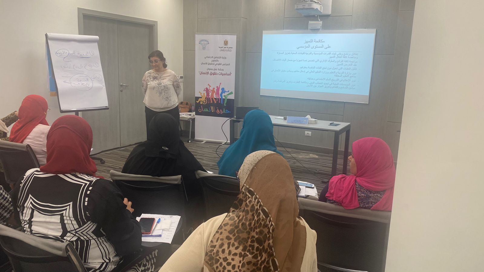 Le Dr Ismail Abdel Rahman, membre du CNDH et superviseur du département de formation, a passé en revue les éléments du contenu de la formation, qui comprenait (que sont les droits de l'homme, l'introduction du CNDH, le concept de la Charte internationale des droits de l'homme, la prévention de la discrimination et la lutte contre discours de haine, la Convention internationale relative aux personnes handicapées, l'introduction de la stratégie nationale pour les droits de l'homme, le mécanisme du conseil pour traiter les plaintes, les droits de l'homme dans la constitution égyptienne.