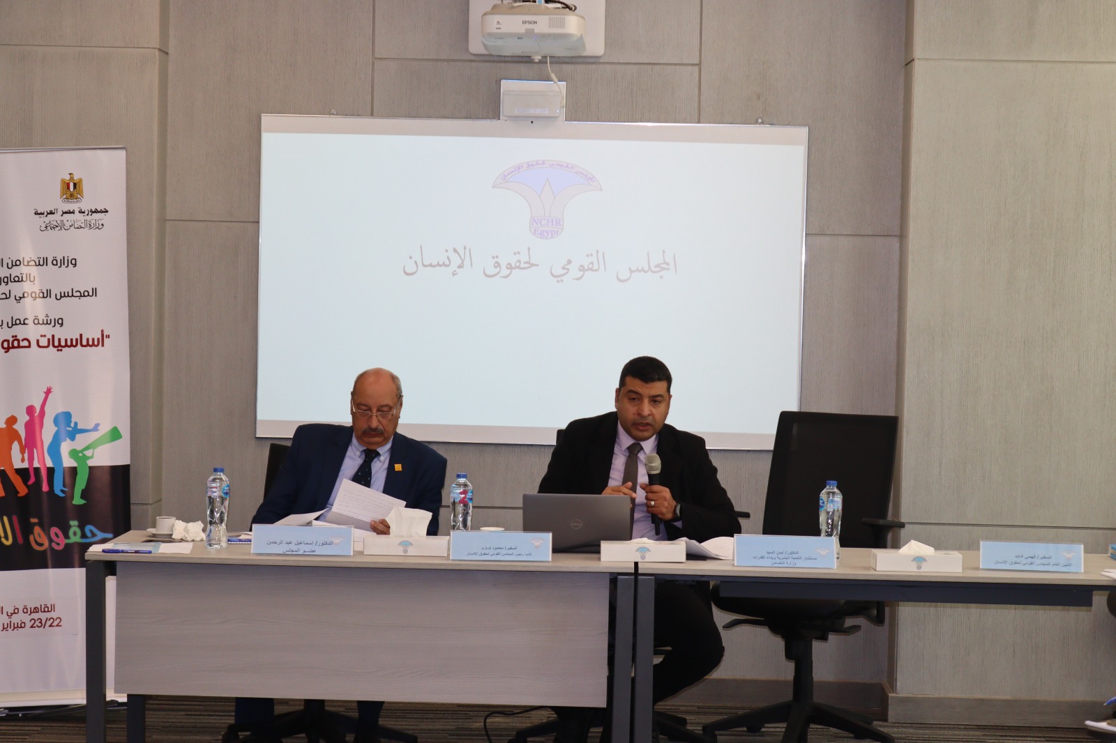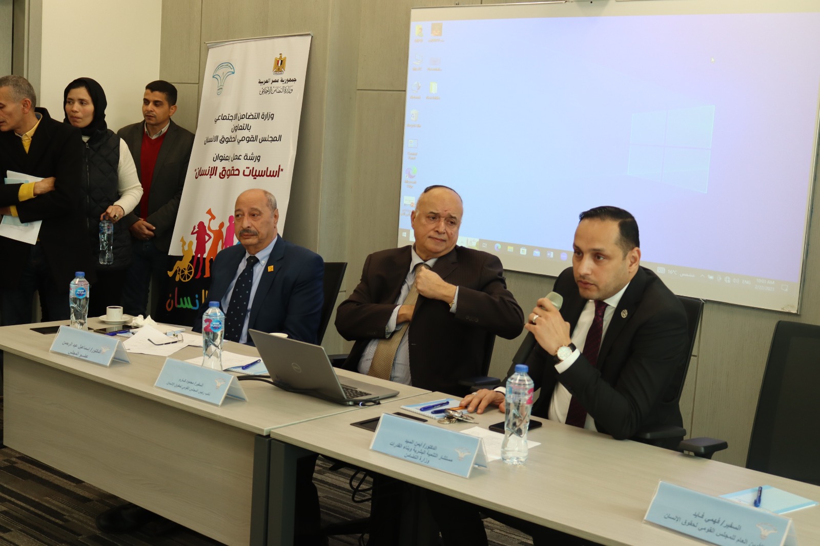 افتتح الدورة التدريبية، التي إستمرت على مدار يومين، السفير محمود كارم نائب رئيس المجلس القومي لحقوق الإنسان ، الدكتور إسماعيل عبد الرحمن المشرف العام على إدارة التدريب وعضو المجلس ، والدكتور أيمن السيد مستشار وزيرة التضامن الإجتماعي .