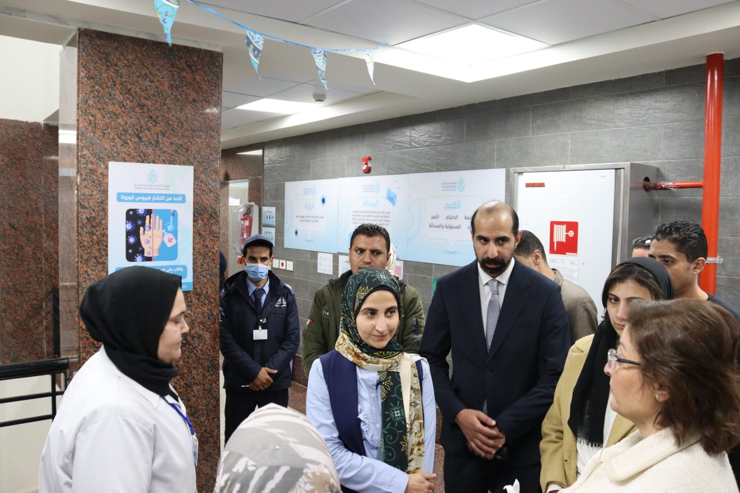 وقامت البعثة بزيارة مستشفى الطوارئ والجراحات المتخصصة بأبو خليفة وتبين من خلال الزيارة أن المستشفى